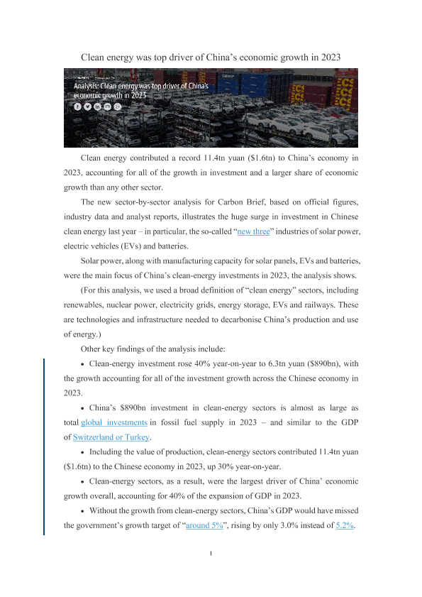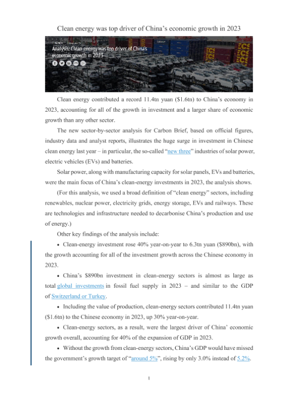 【Carbon Brief】【2023】清洁能源是2023年中国经济增长的主要驱动力-18页