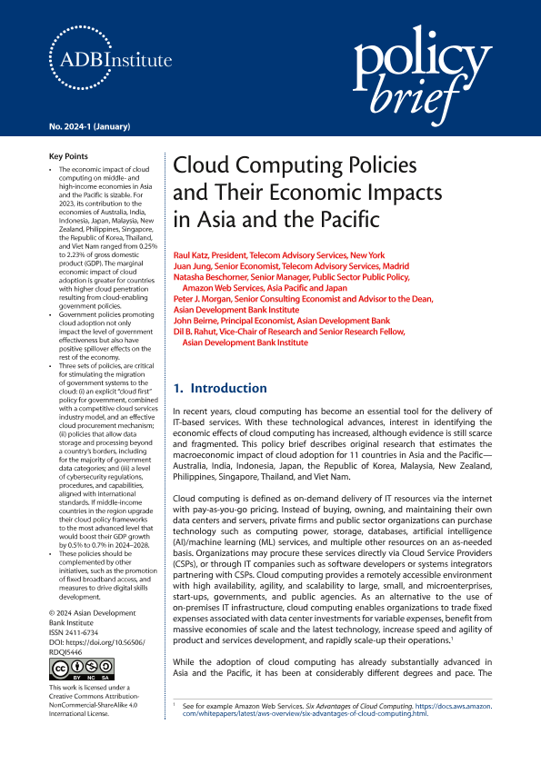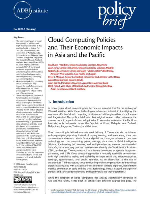 【Asian Development Bank Institute】【202401】亚开行-云计算政策及其对亚太地区的经济影响-12页