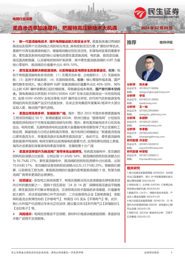 【民生证券】【20240208】电网行业深度:柔直渗透率加速提升,把握特高压新技术大机遇-28页