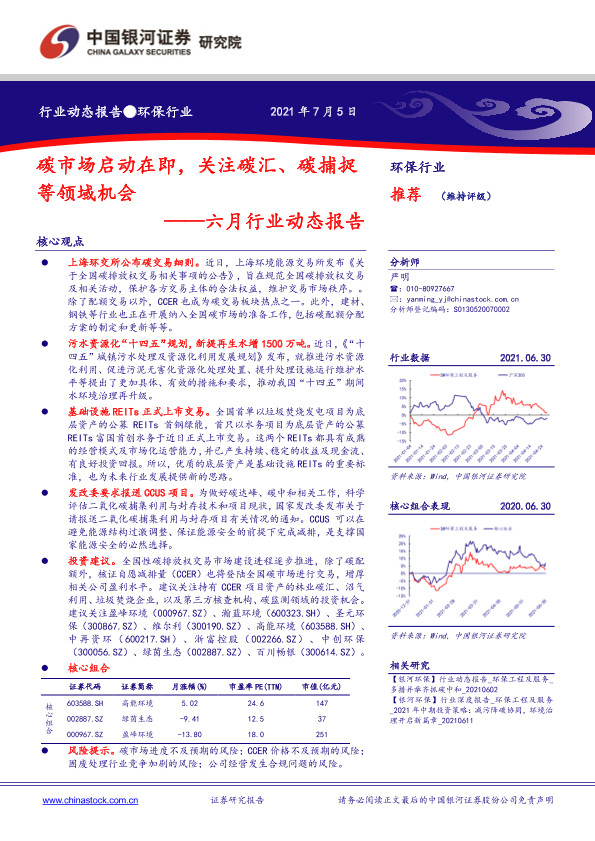 【银河证券】【20210705】环保行业六月行业动态报告:碳市场启动在即,关注碳汇、碳捕捉等领域机会-18页