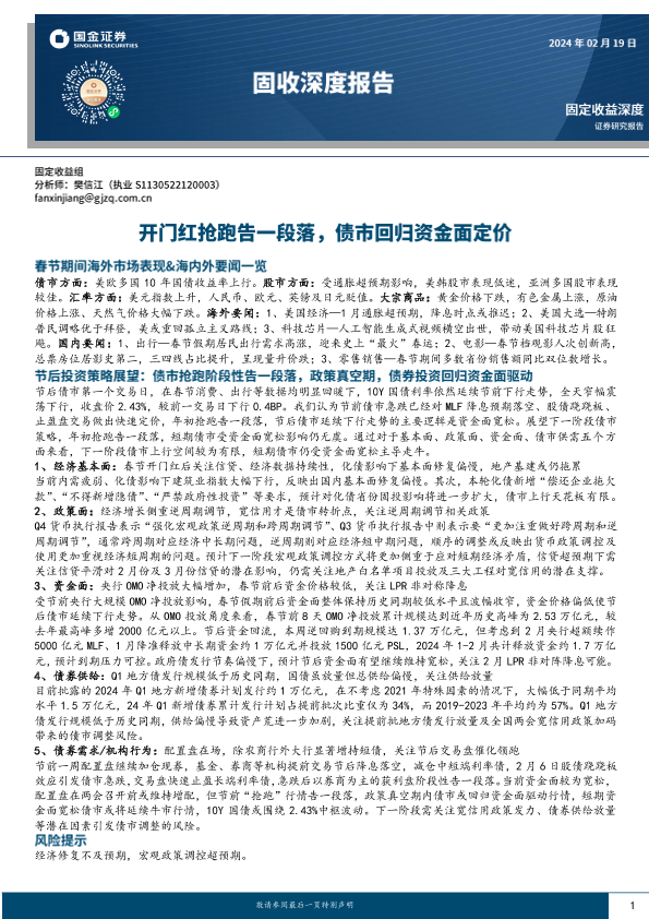 【国金证券】【20240219】固收深度报告:开门红抢跑告一段落,债市回归资金面定价-20页