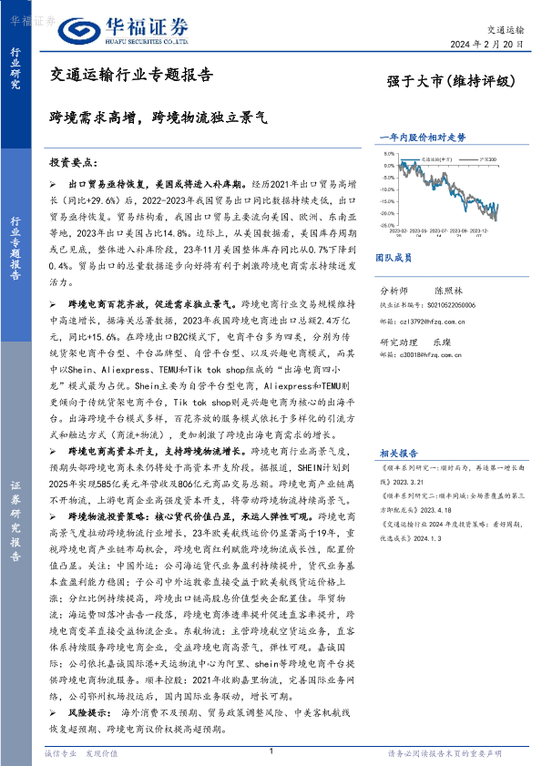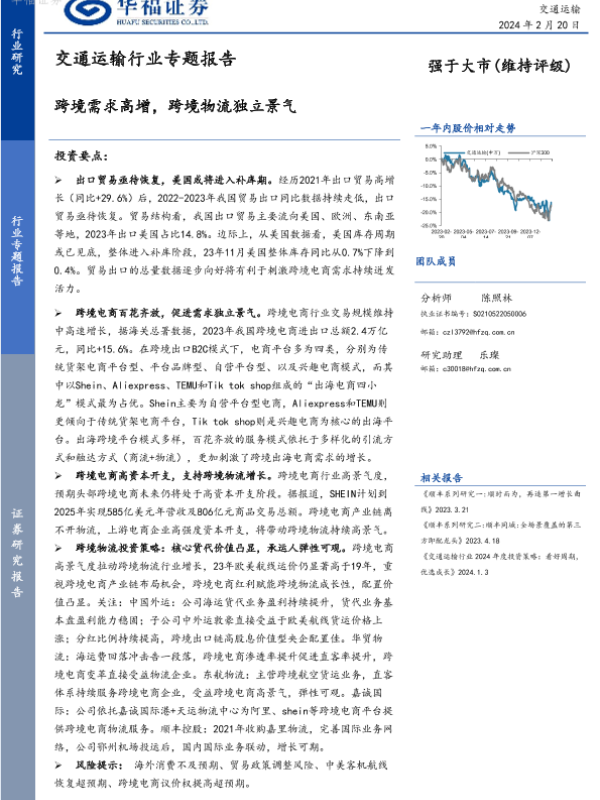 【华福证券】【20240220】交通运输行业专题报告:跨境需求高增,跨境物流独立景气-12页