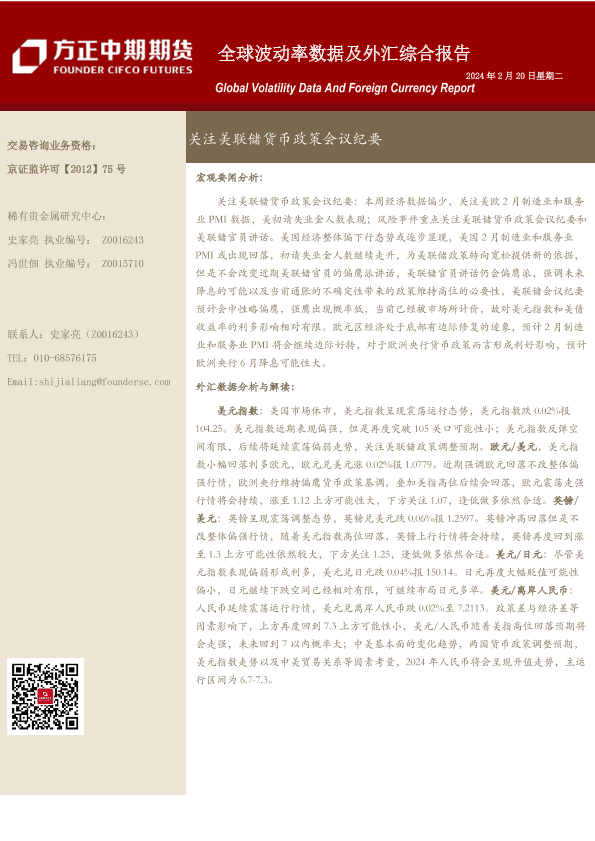 【方正中期期货】【20240220】全球波动率数据及外汇综合报告:关注美联储货币政策会议纪要-18页