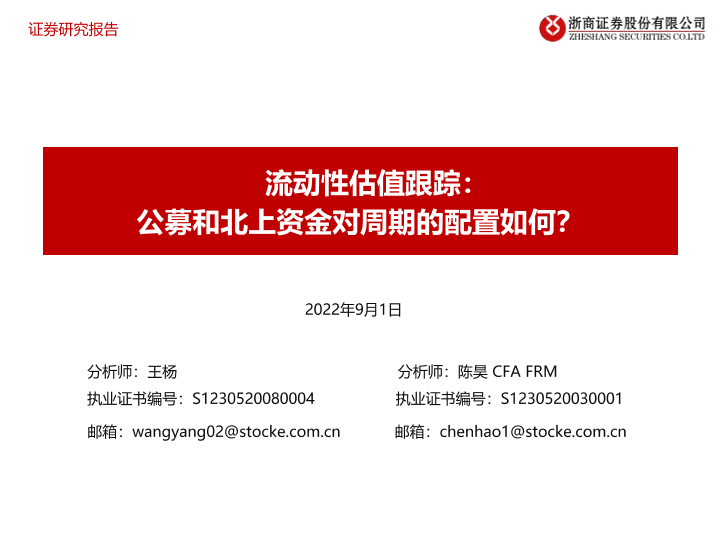 【浙商证券】【20220901】流动性估值跟踪:公募和北上资金对周期的配置如何?-49页