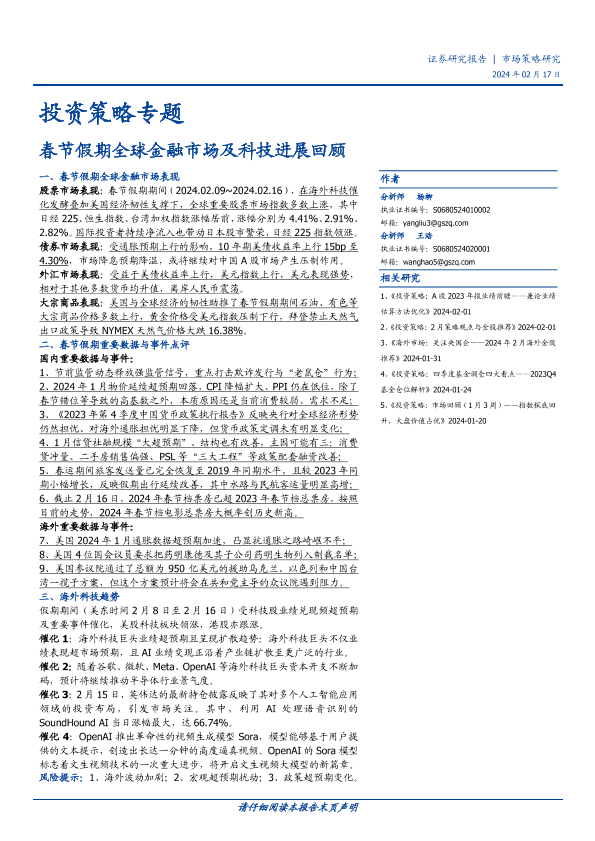 【国盛证券】【20240217】投资策略专题:春节假期全球金融市场及科技进展回顾-17页