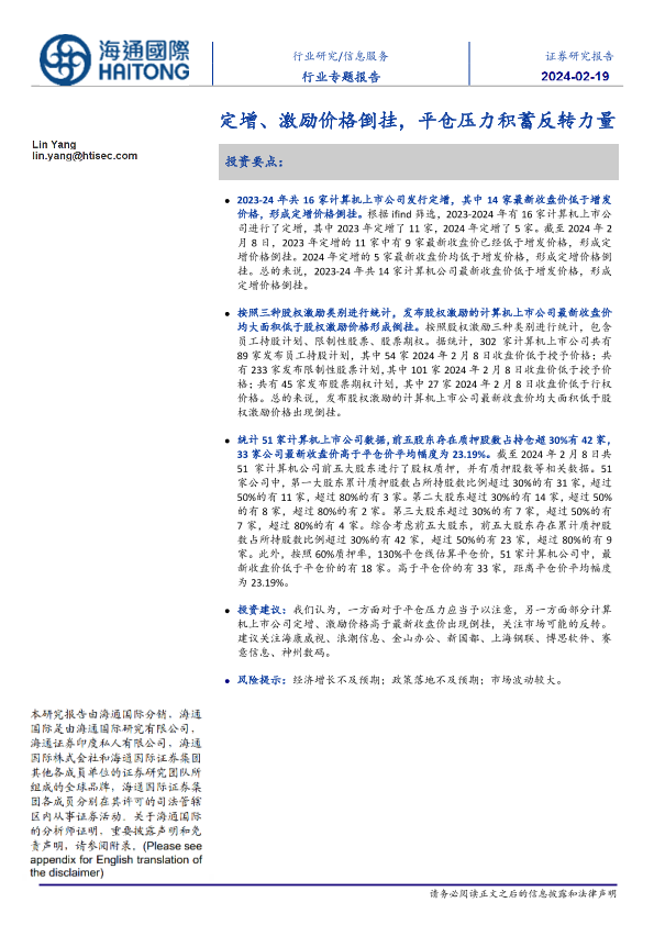 【海通国际】【20240219】信息服务行业专题报告:定增、激励价格倒挂,平仓压力积蓄反转力量-18页