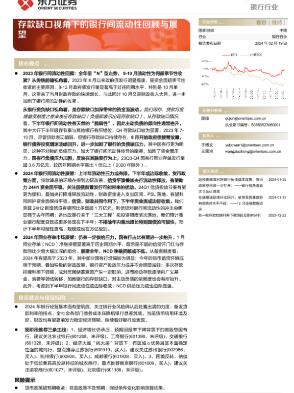 【东方证券】【20240219】银行行业深度报告:存款缺口视角下的银行间流动性回顾与展望-22页