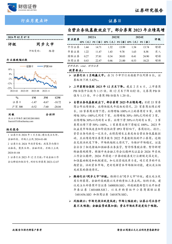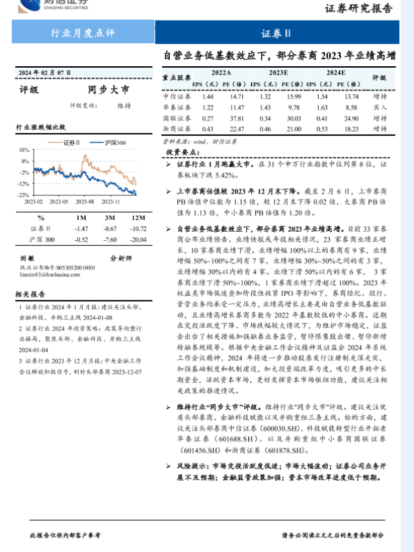 【财信证券】【20240207】证券行业月度点评:营业务低基数效应下,部分券商2023年业绩高增-11页