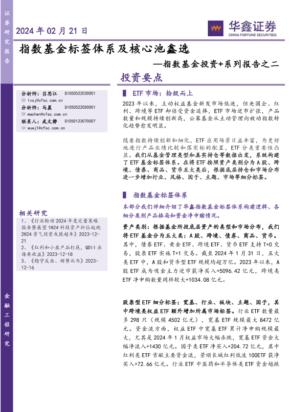【华鑫证券】【20240221】指数基金投资+系列报告之二:指数基金标签体系及核心池鑫选-17页
