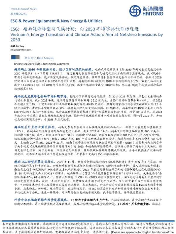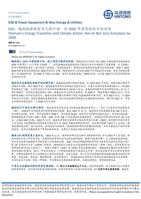 【海通国际】【20240221】ESG:越南能源转型与气候行动:向2050年净零排放目标迈进-11页