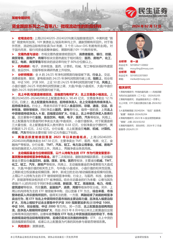 【民生证券】【20240212】资金跟踪系列之一百零八:微观流动性的阶段好转-38页