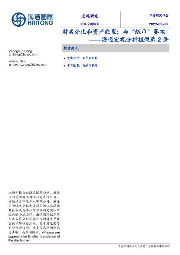 【海通国际】【20220830】海通宏观分析框架第2讲:财富分化和资产配置,与“纸币”赛跑-22页