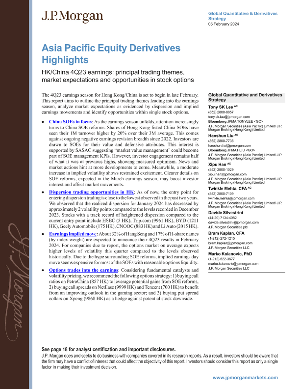 【J.P. Morgan】【20240205】HK/China 4Q23 earnings principal trading themes, market expectations and opportunities in stock options-23页