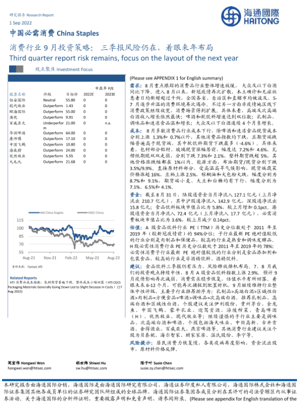 【海通国际】【20220901】消费行业9月投资策略:三季报风险仍在,着眼来年布局-39页
