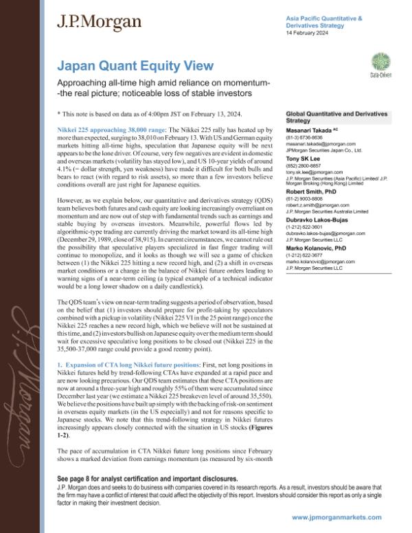 【J.P. Morgan】【20240214】Japan Quant Equity View Approaching all-time high amid reliance on momentum--the real picture; noticeable loss of stable investors-12页