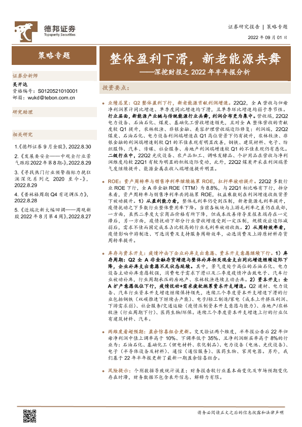 【德邦证券】【20220901】深挖财报之2022年半年报分析:整体盈利下滑,新老能源共舞-25页