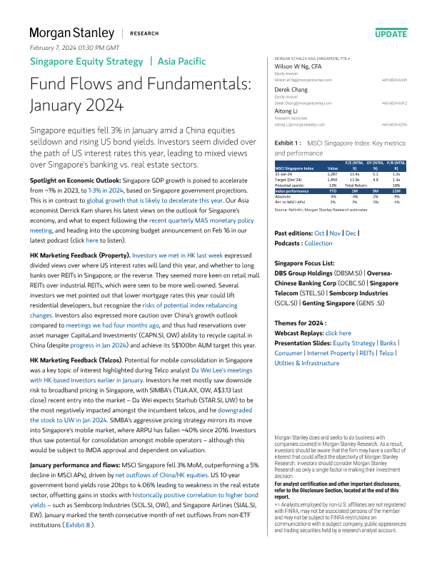 【Morgan Stanley】【202401】Singapore Equity Strategy | Fund Flows and Fundamentals January 2024-9页