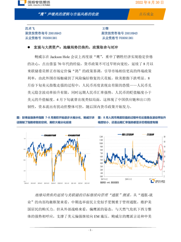 【国投安信期货】【20220830】点石成金:“鹰”声嘹亮的逻辑与市场风格的收敛-17页