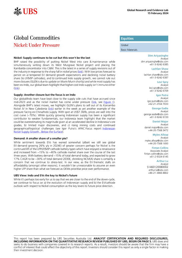 【UBS Securities Australia Ltd.】【20240215】Nickel Under Pressure-13页