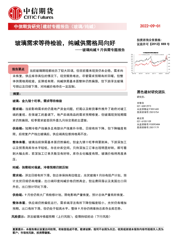 【中信期货】【20220901】玻璃纯碱9月供需专题报告:玻璃需求等待检验,纯碱供需格局向好-16页