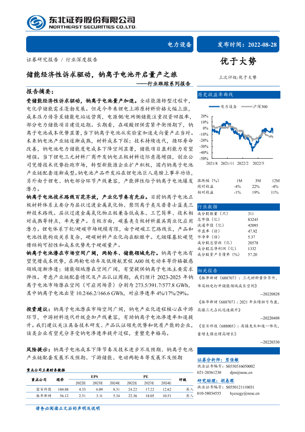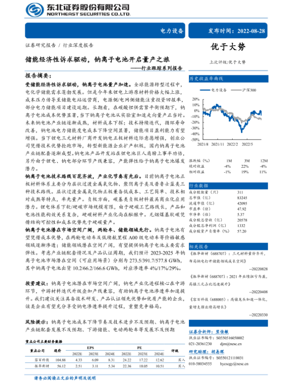 【东北证券】【20220828】储能经济性诉求驱动,钠离子电池开启量产之旅-30页