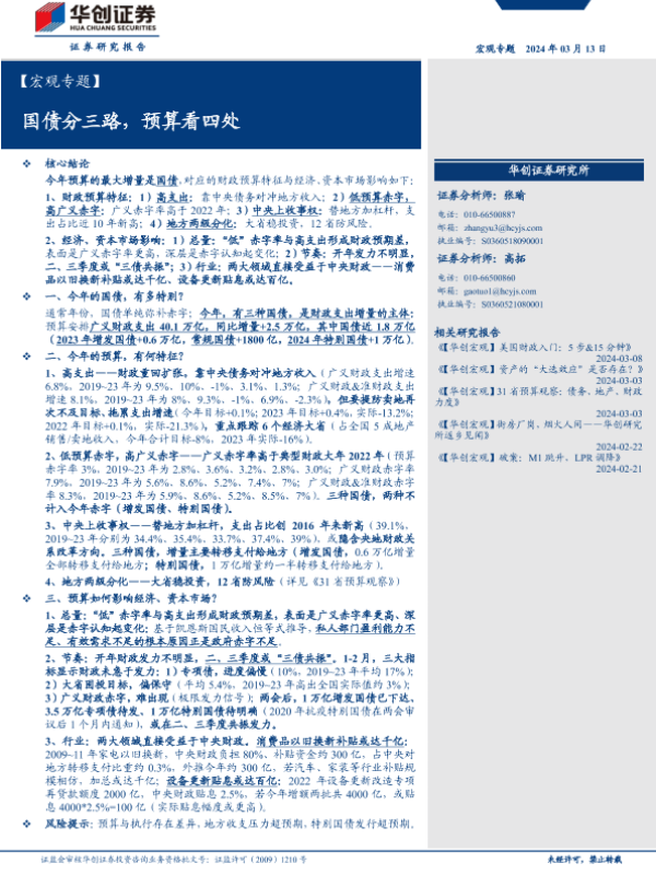 【华创证券】【20240313】【宏观专题】国债分三路,预算看四处-13页