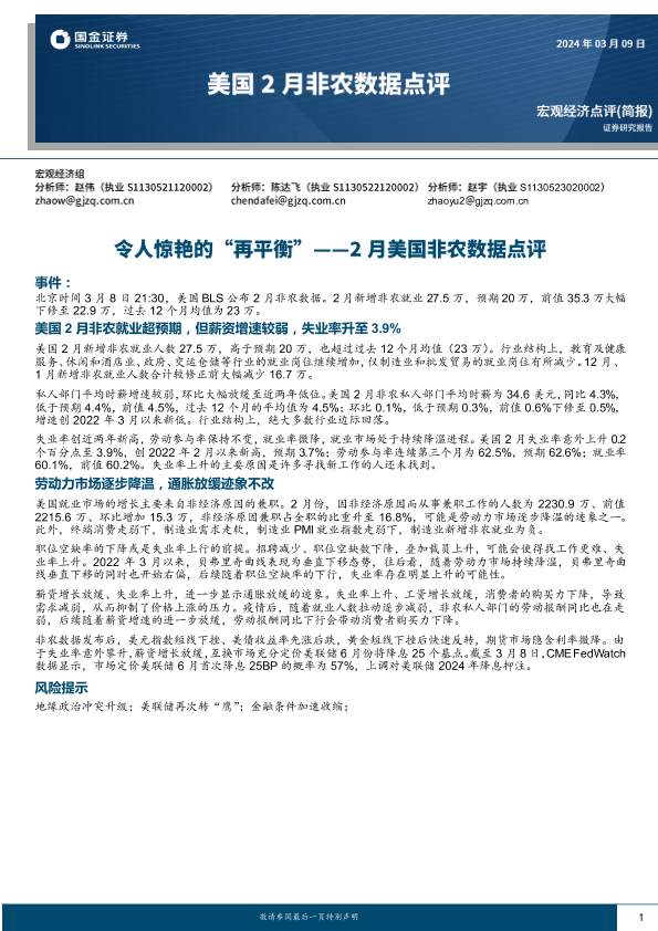 【国金证券】【202403】2月美国非农数据点评:令人惊艳的“再平衡”-10页