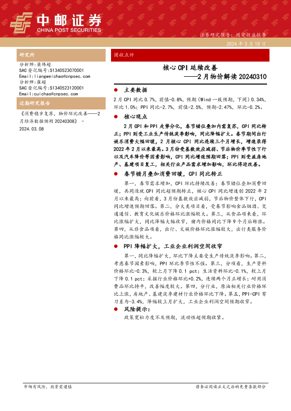 【中邮证券】【20240310】2月物价解读:核心CPI延续改善-12页
