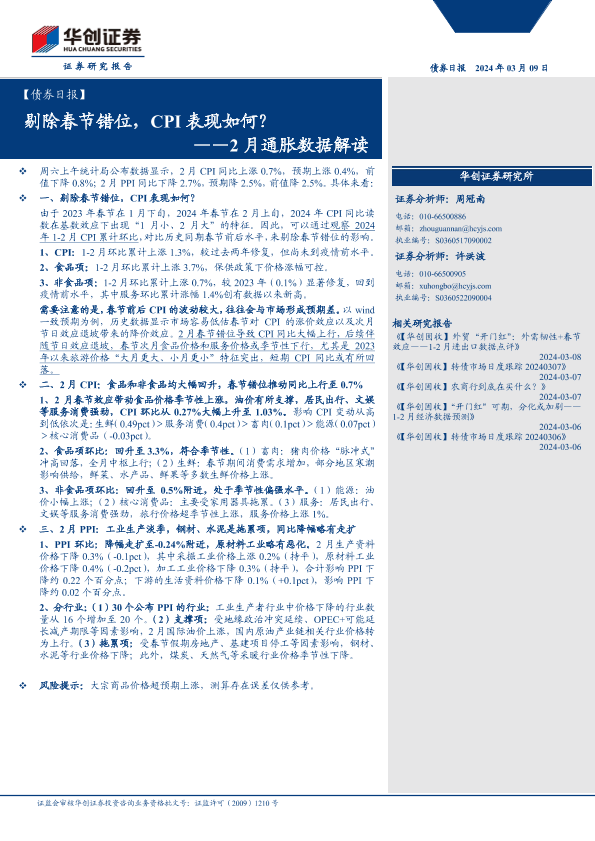 【华创证券】【20240309】2月通胀数据解读:剔除春节错位,CPI表现如何?-13页
