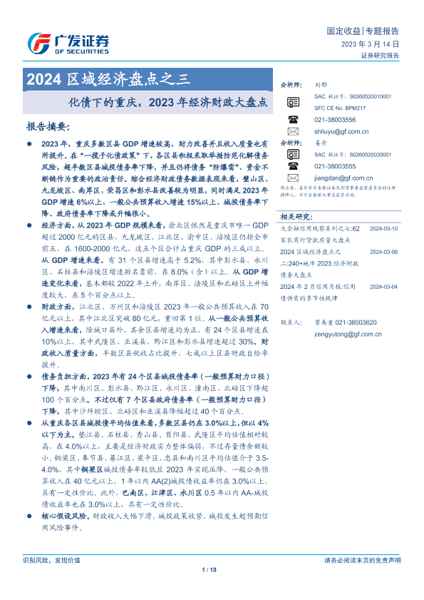 【广发证券】【20240314】2024区域经济盘点之三:化债下的重庆,2023年经济财政大盘点-11页