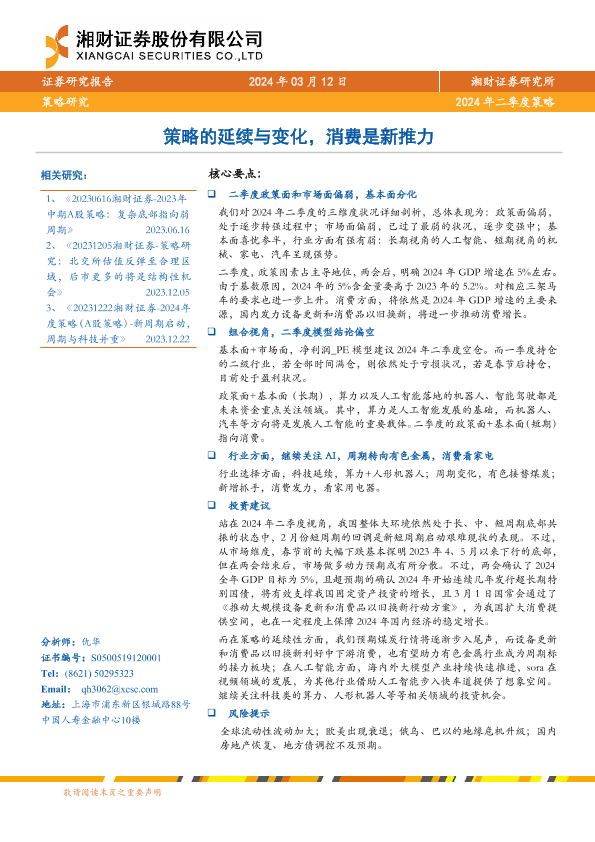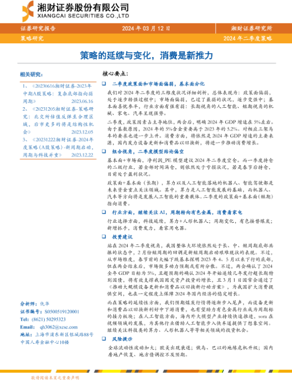 【湘财证券】【20240312】2024年二季度策略:策略的延续与变化,消费是新推力-29页