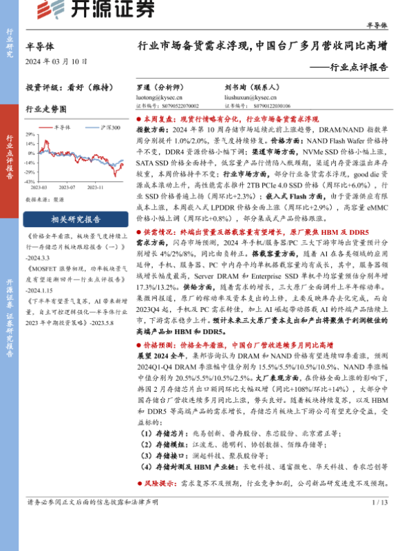 【开源证券】【20240310】半导体行业点评报告:行业市场备货需求浮现,中国台厂多月营收同比高增-13页