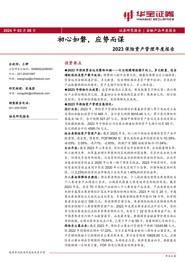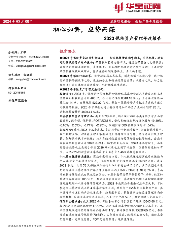 【华宝证券】【20240308】保险行业2023保险资产管理年度报告:初心如磐,应势而谋-41页