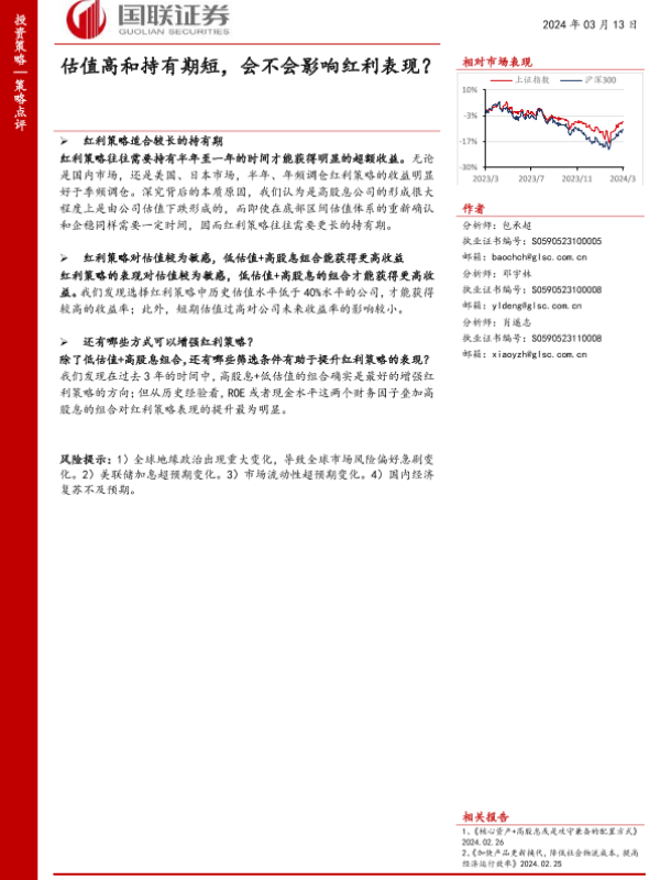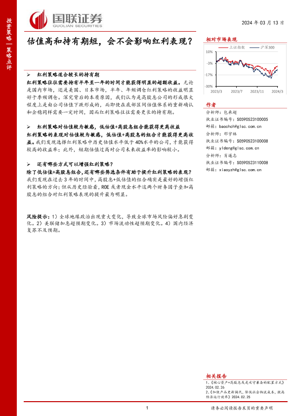 【国联证券】【20240313】策略点评:估值高和持有期短,会不会影响红利表现?-27页