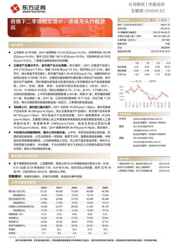 【东方证券】【20220825】疫情下二季度稳定增长,浓香龙头行稳致远-5页