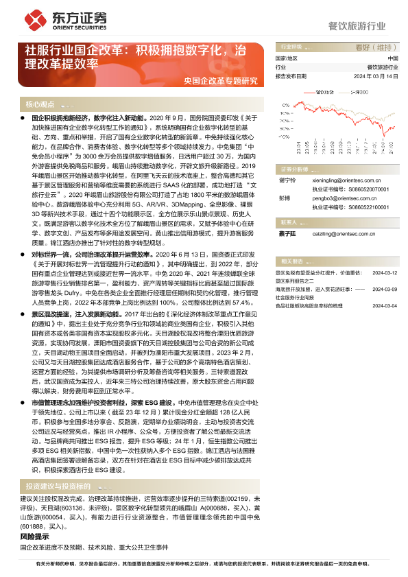 【东方证券】【20240314】餐饮旅游行业央国企改革专题研究:社服行业国企改革,积极拥抱数字化,治理改革提效率-12页