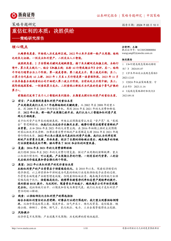 产业周期 供给侧优化 策略专题 红利资产 证券研究