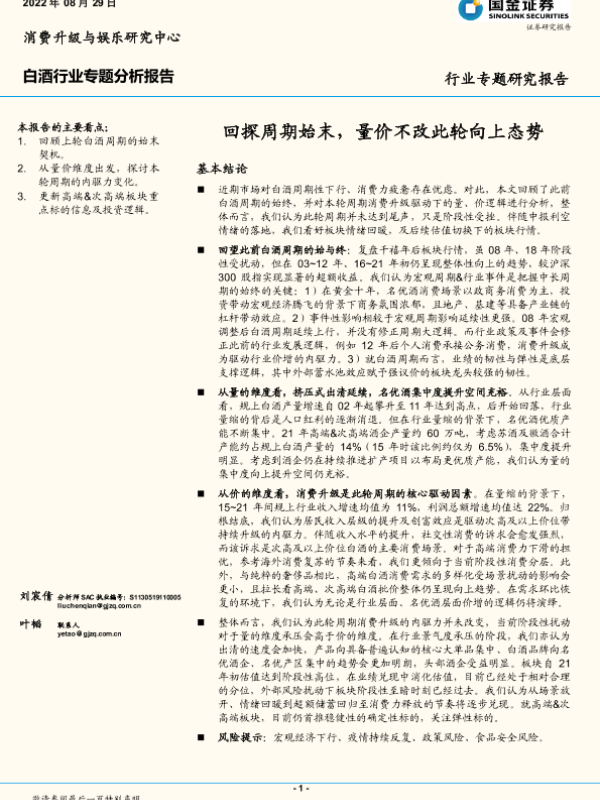 【国金证券】【20220829】白酒行业专题分析报告:回探周期始末,量价不改此轮向上态势-18页