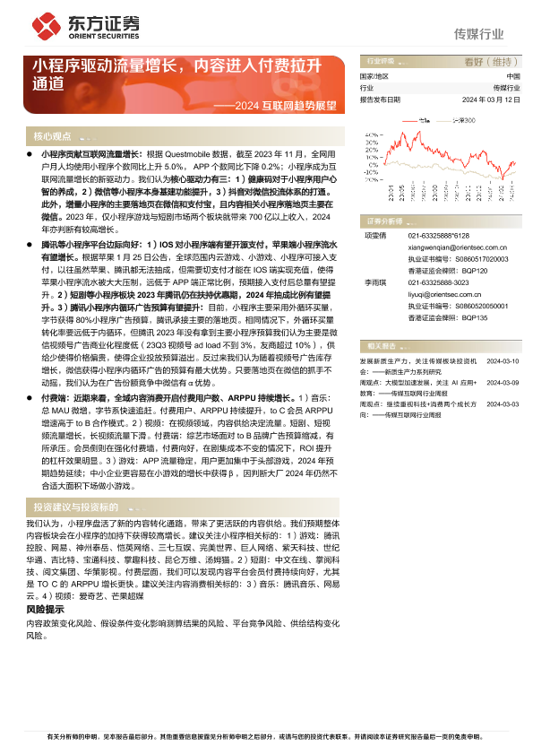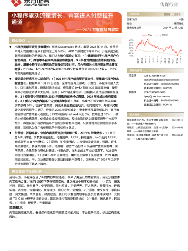 【东方证券】【20240312】传媒行业2024互联网趋势展望:小程序驱动流量增长,内容进入付费拉升通道-27页