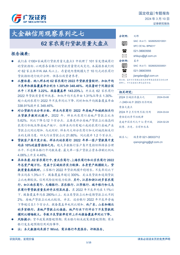 【广发证券】【20240310】大金融信用观察系列之七:62家农商行贷款质量大盘点-15页