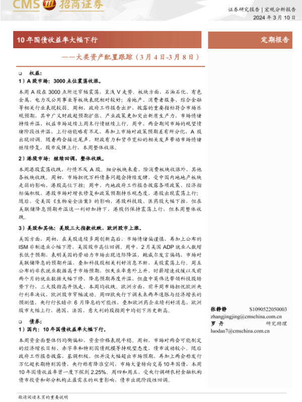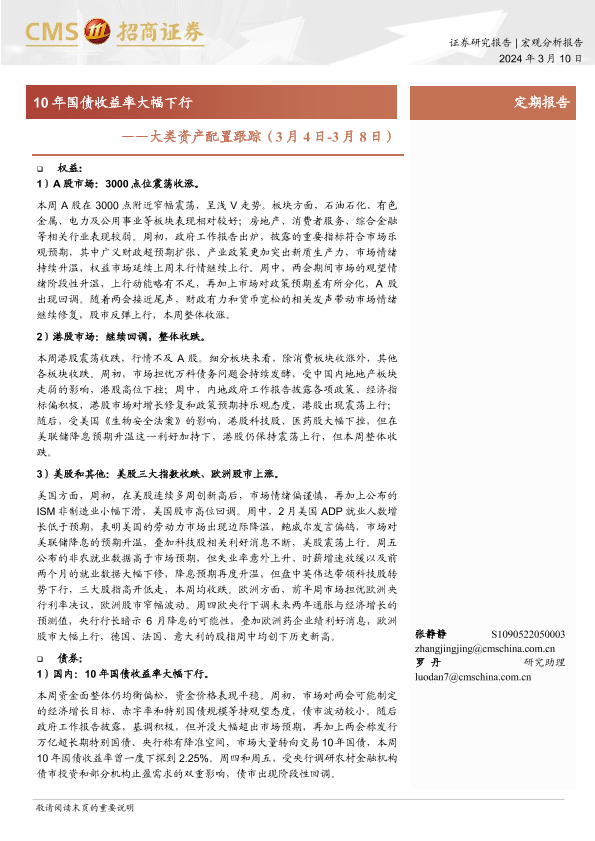 【海通证券】【20240310】大类资产配置跟踪:10年国债收益率大幅下行-10页
