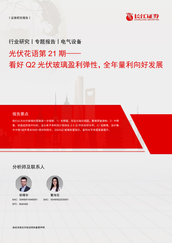 【长江证券】【20240310】光伏花语第21期——看好Q2光伏玻璃盈利弹性,全年量利向好发展-14页