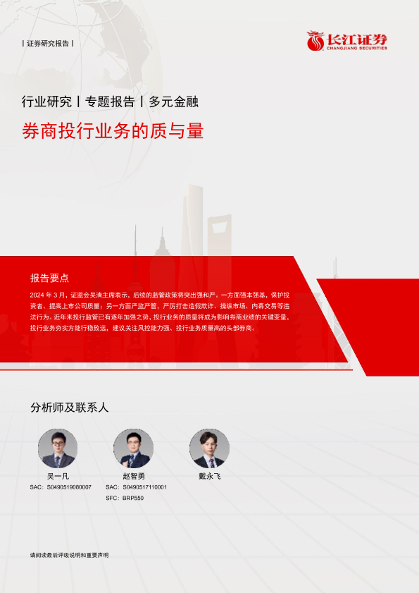 券商投行业务 投资分析 监管政策 金融行业 风险控制