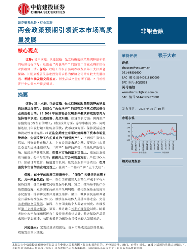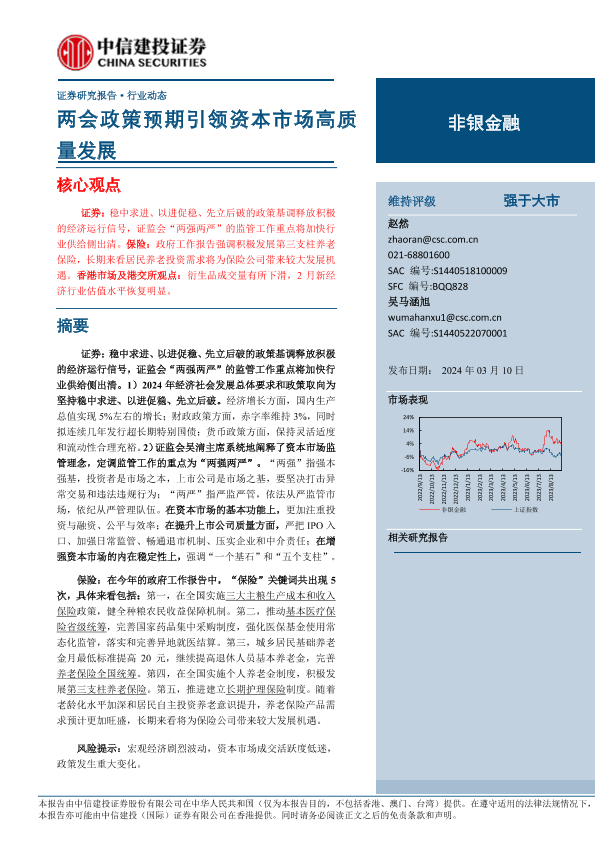 【中信建投证券】【20240310】非银金融行业:两会政策预期引领资本市场高质量发展-24页
