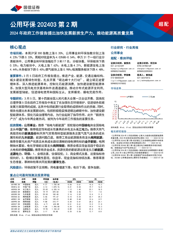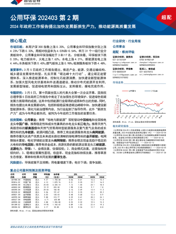 【国信证券】【20240310】公用环保202403第2期:2024年政府工作报告提出加快发展新质生产力,推动能源高质量发展-29页