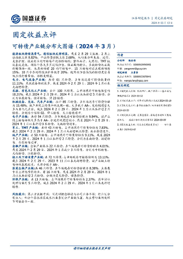 【国盛证券】【202403】固定收益点评:可转债产业链分布大图谱(2024年3月)-23页
