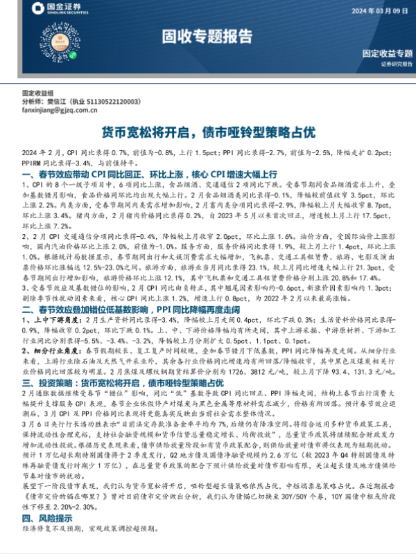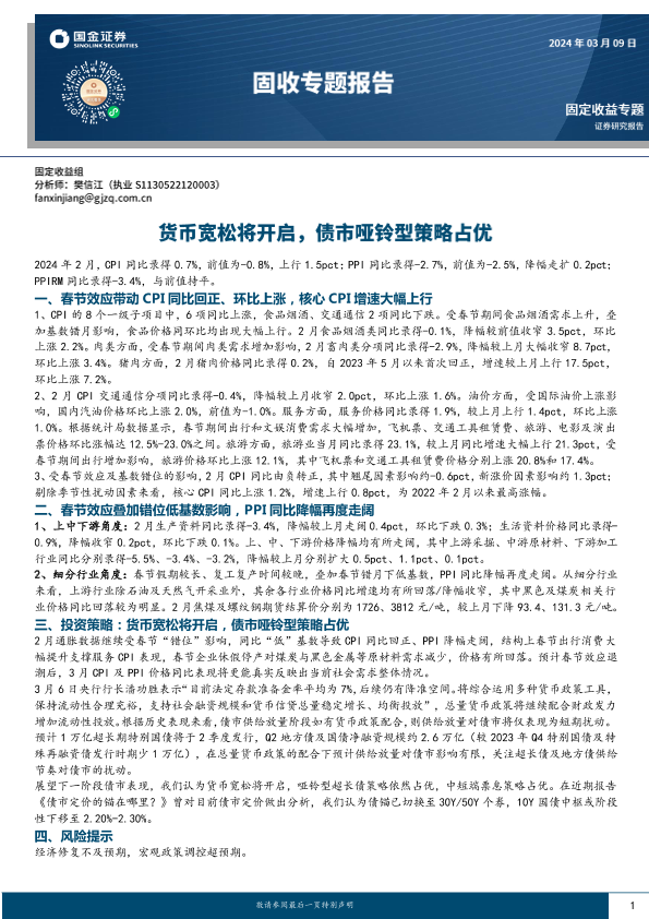【国金证券】【20240309】固收专题分析报告:货币宽松将开启,债市哑铃型策略占优-13页