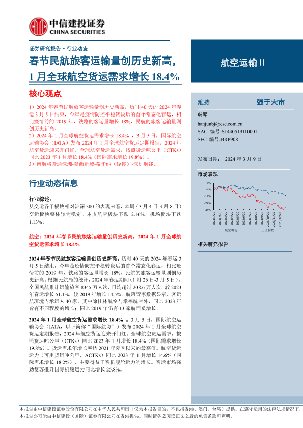 【中信建投证券】【20240309】航空运输Ⅱ行业:春节民航旅客运输量创历史新高,1月全球航空货运需求增长18.4%-25页