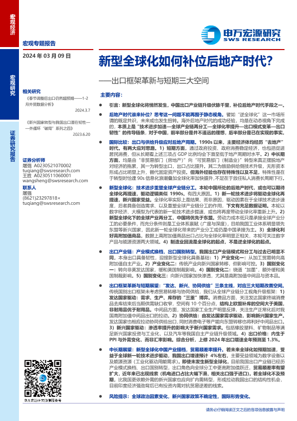 【申万宏源】【20240309】宏观专题报告:出口框架革新与短期三大空间,新型全球化如何补位后地产时代?-38页
