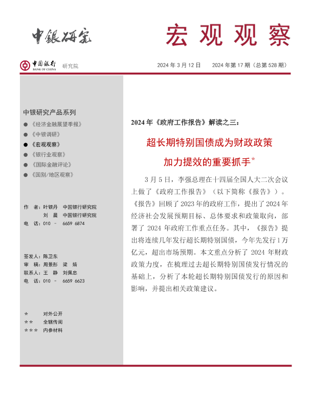 【中国银行研究院】【20240312】2024年《政府工作报告》解读之三:超长期特别国债成为财政政策加力提效的重要抓手-13页